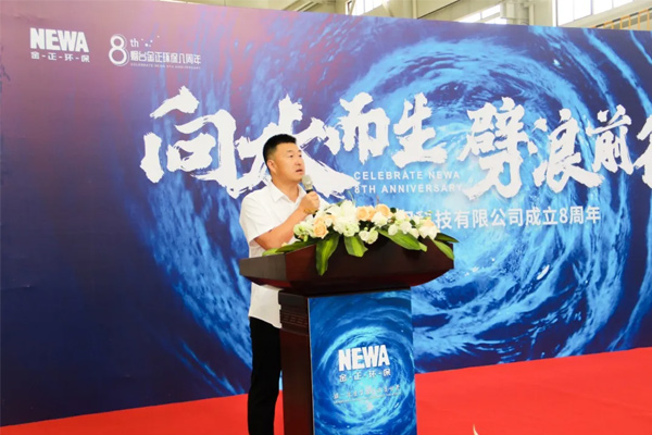 活動現(xiàn)場,公司總裁李越彪首先向八年來為公司發(fā)展而努力付出的人致謝。他表示,人生總要做點事,一生只做一件事,金正環(huán)保就是要成為中國乃至世界污水回用領(lǐng)軍企業(yè)。未來,相信在全體金正人的共同努力下,金正環(huán)保必將迎來更加輝煌的明天。