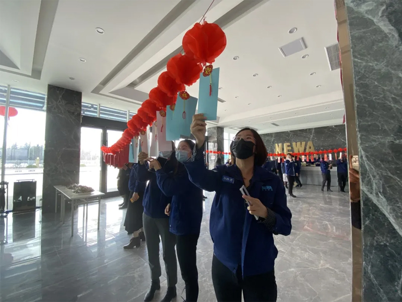 火紅的燈籠將現場點綴得分外喜慶,200多條內容豐富、各式各樣的謎語展現在員工面前,燈謎涵蓋了公司產品謎、環保謎、物品謎、字謎等,既具娛樂性,又具知識性。員工們都爭先恐后的看謎面猜謎語,或仰目細看,或低頭深思,或相互討論。一番苦思冥想,一條條謎底被紛紛猜中,不一會兒兌獎處就排起了長龍。兌過獎的員工手里拿著獎品,臉上都洋溢著歡樂、喜悅的笑容。