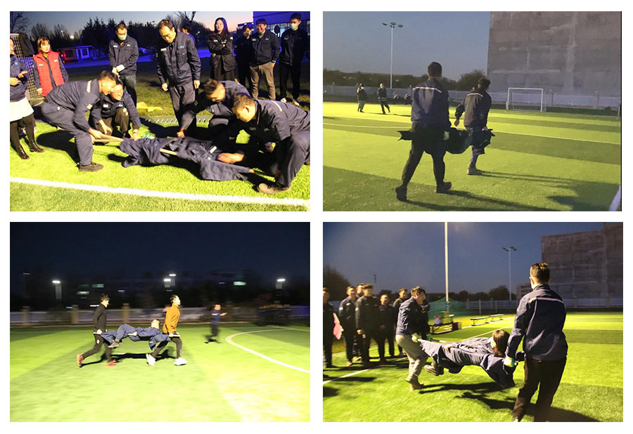 “兄弟,有我在,別怕!”公司發(fā)展歷程中始終重視“以人為本”的安全理念,時(shí)刻懷著謹(jǐn)慎之心,設(shè)想最不利條件下,員工是否能組織自救。本次救援演練沒(méi)有擔(dān)架,只有平常生產(chǎn)中常見(jiàn)的物料,救援人員要利用現(xiàn)場(chǎng)條件自制擔(dān)架,組織救援。
