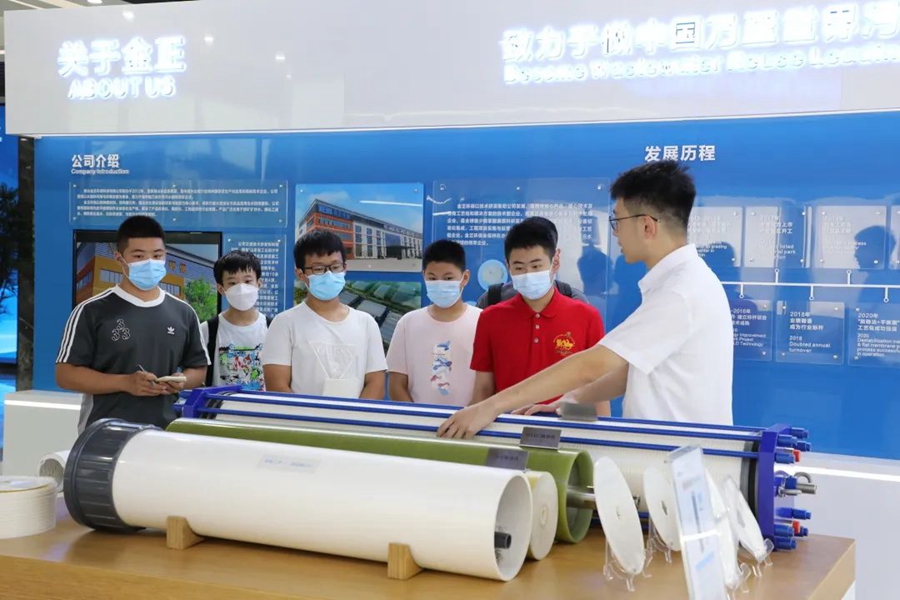 青少年志愿者們依次走訪了公司大數據中心、展廳、膜中心、組裝車間、研發實驗室等地。在這里,志愿者們近距離了解,世界領先的污廢水資源化和高品質再生水回用工藝技術,實現年減排污廢水7300萬噸;聆聽“中國人用自己的工藝包”解決“卡脖子”的發展難題”,打破國外技術壟斷的項目故事;感知世界領先的“特種膜全自動化生產線”,如何集聚工業互聯網、工業機器人、5G等先進技術,開啟世界膜工業智能制造時代。